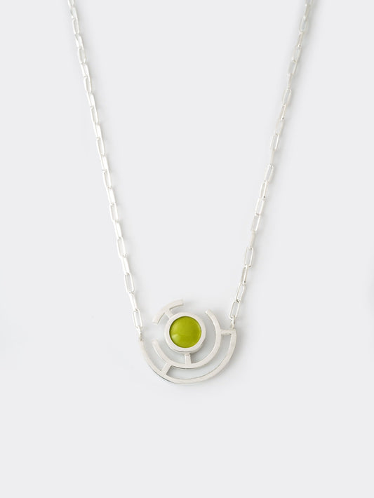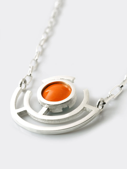 Flame Orange Vitreous Enamel Necklace | Modern Silver Pendant | Geometric Pendant |Contemporary Necklace | Minimalist Silver Necklace